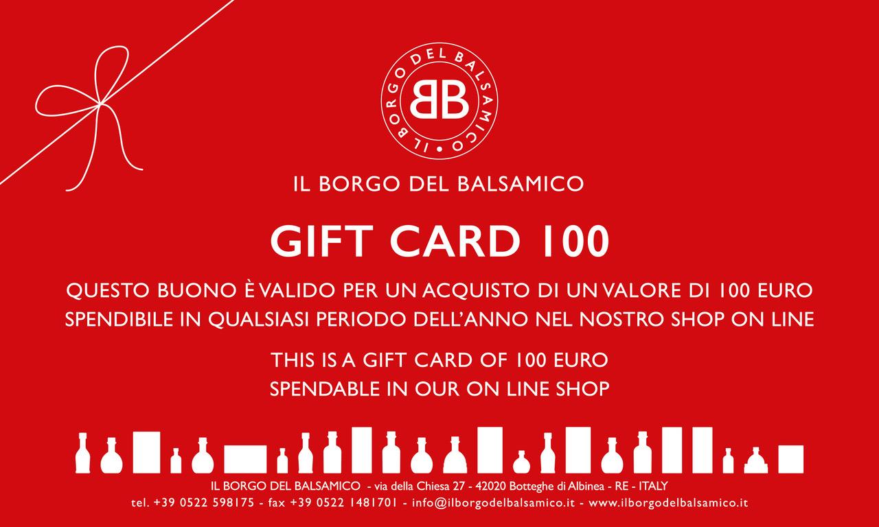Gift Card 100. un regalo unico e prezioso, un buono spendibile in qualsiasi periodo dell’anno nel nostro shop on line.